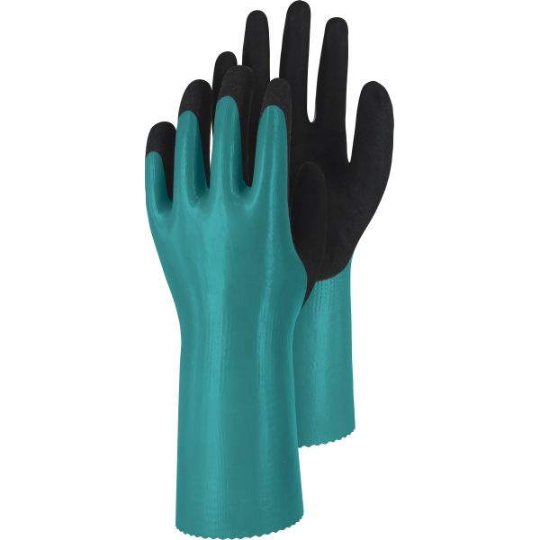Wasser- und ölabweisend, hohe chemische Beständigkeit. Schnittschutzstufe D. Die 18-Gauge-Gewebetechnologie mit fortschrittlicher, Beschichtungstechnologie trägt zu hervorragender Flexibilität, Fingerfertigkeit und Komfort bei. Kontakthitzeschutz bis 100°C nach DIN EN 407. Das sandige Finish bietet eine hervorragende Griffigkeit bei Öl und Nässe,