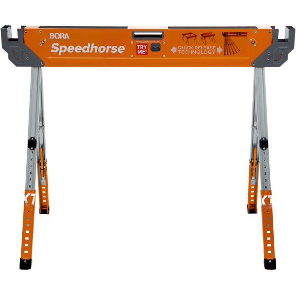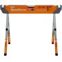 Das ultimative Klappbock-System für Profis. Schnell, stabil und überall einsatzbereit. Arbeitsböcke mit höchster Traglast von 816 kg einzeln und 1632 kg im Paar. Dank patentierter Öffnungsmechanik gelingt der Aufbau per Knopfdruck in ca. 1,6 Sekunden. Die Standfüße der Böcke lassen sich individuell zwischen einer Arbeitshöhe von 76,2 cm und 91,4 cm justieren. Seitliche Aufnahmen (38 x 89 mm) mit Bohrungen zum Einsetzen und Befestigen von Kanthölzern zur Schaffung einer robusten Arbeitsfläche. Lieferung erfolgt im Set, bestehend aus zwei Arbeitsböcken.