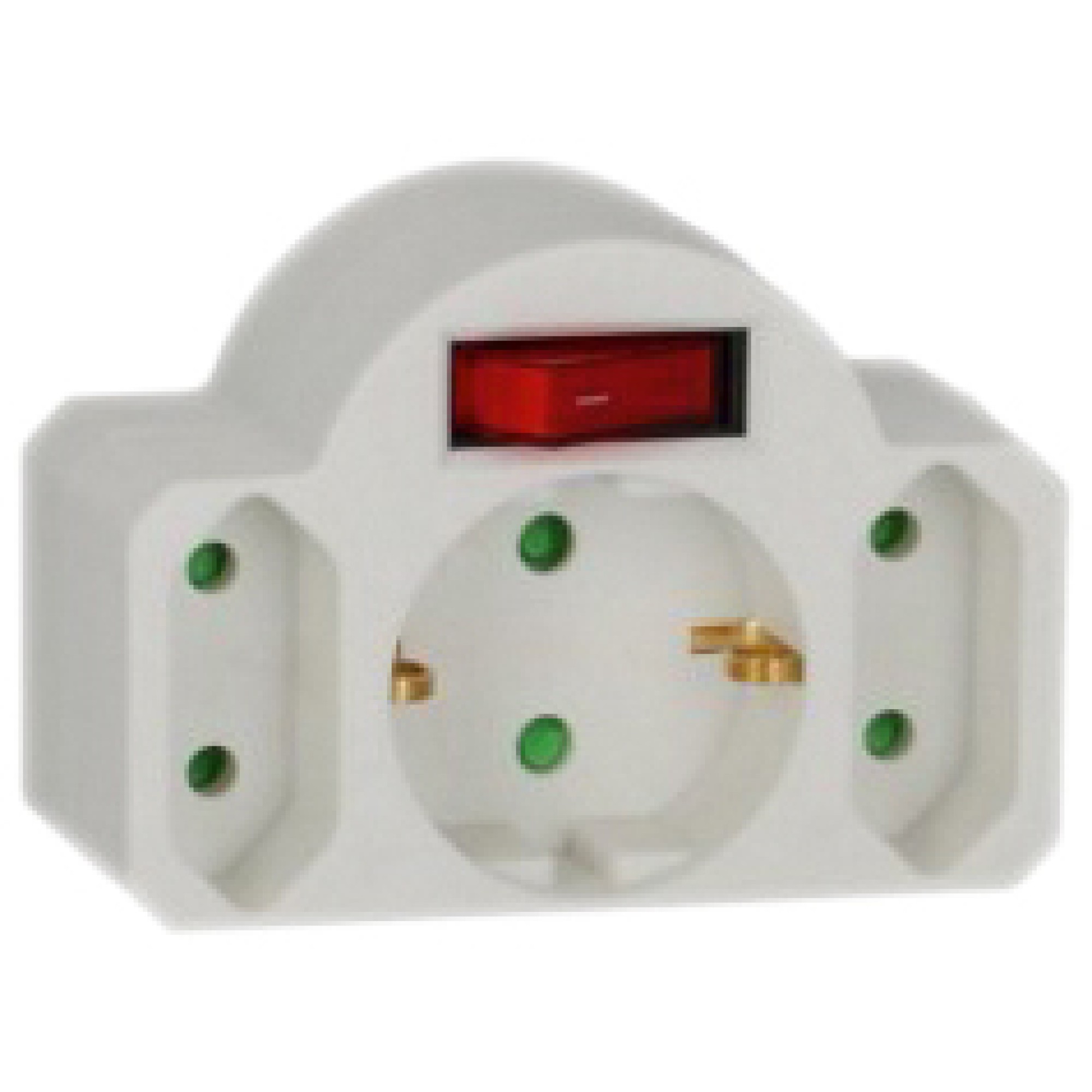 Adapterstecker 2x Euro und 1x Schuko, weiß, mit Schalter