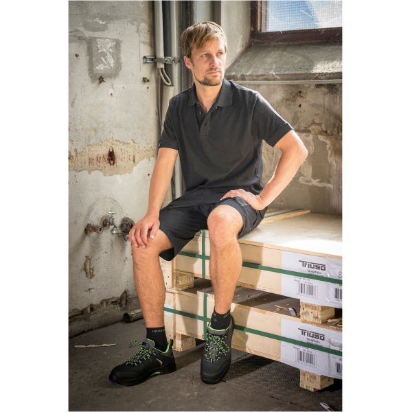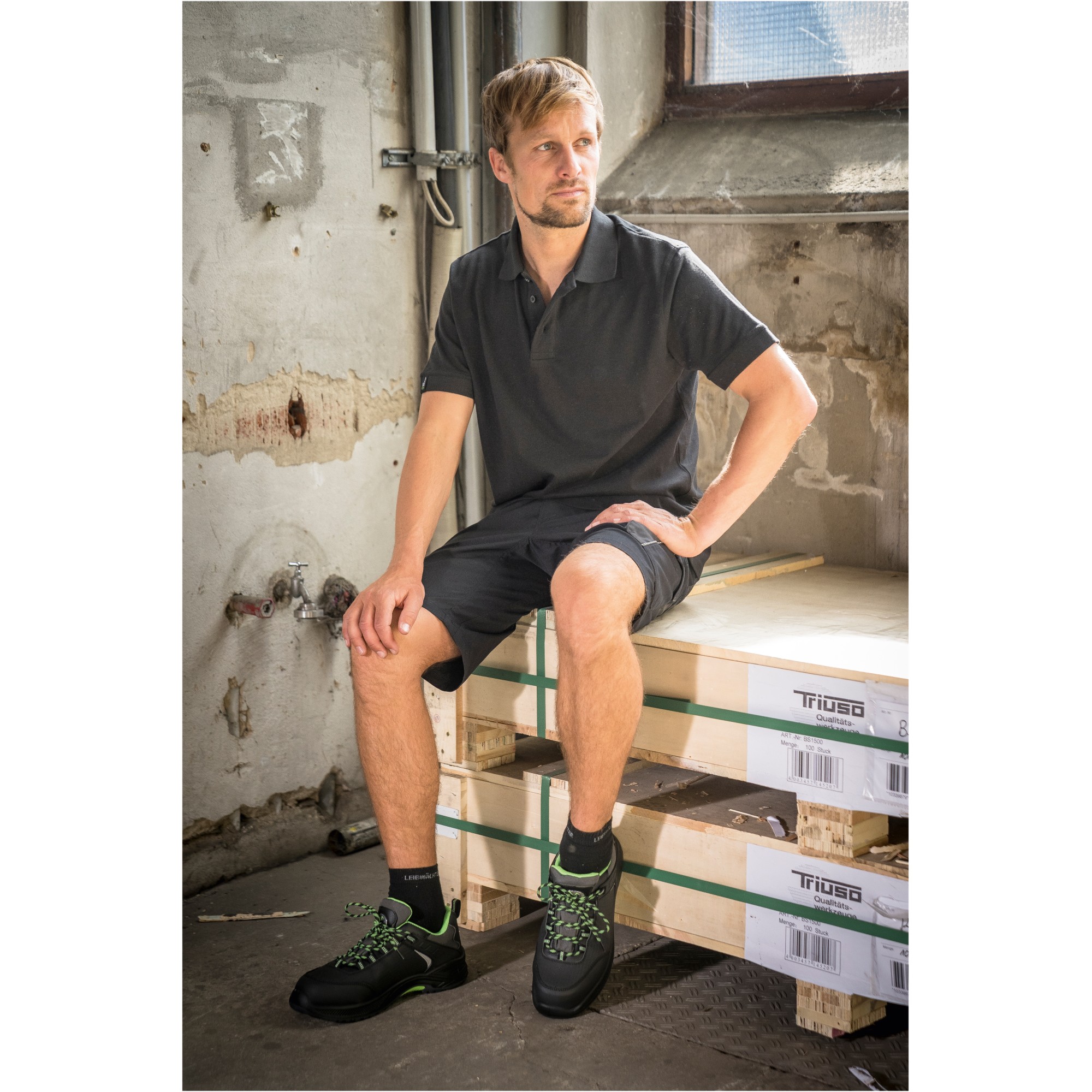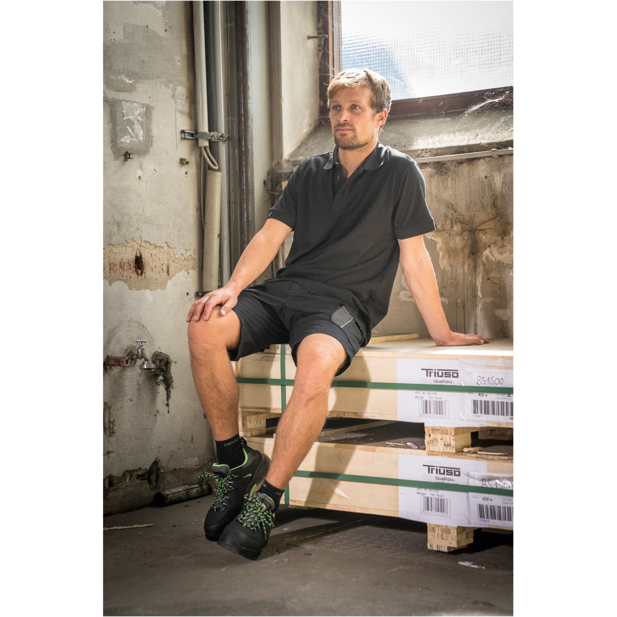 Breathable stretch fabric, straight cut with tight trouser legs, 2-needle topstitching, reflective piping on the pockets for good visibility, flaps with Velcro fastening, 5 wide belt loops, fly with quality zip, gusset in the crotch area facilitates movement and prevents the seams from unravelling,